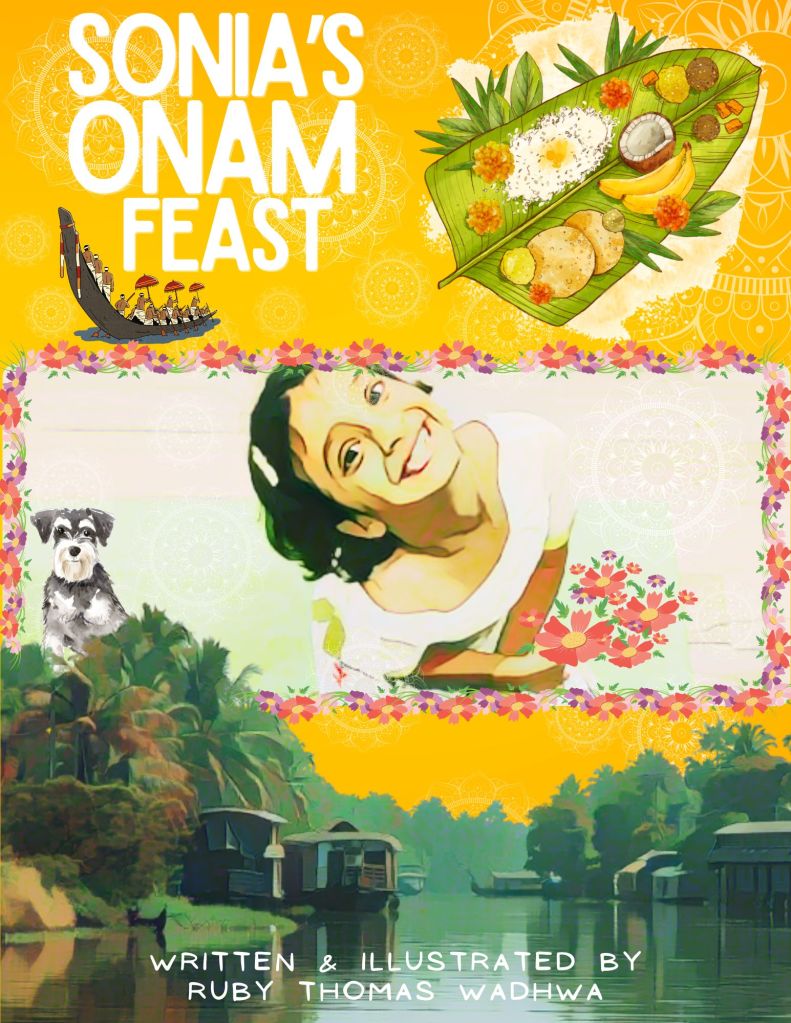 Sonia’s Onam Feast – Front Cover ( All original digital artwork by Ruby Thomas Wadhwa)